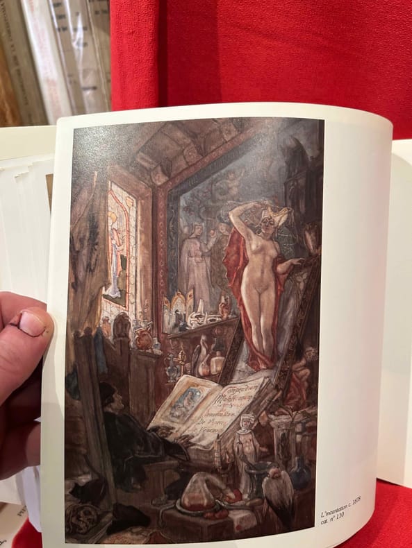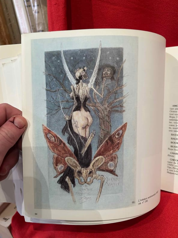Revue "La Plume" n° 172 du 15 juin 1896, numéro spécial consacré à Félicien ROPS. Paris, 1896. 24,5x17,5 cm, pagination de 388 à 514 + 16 pp. (catalogue de l'oeuvre de F. Rops). Broché, couverture illustrée, dos très abimé avec manques de papier, en partie débroché. Intérieur en bon état.En fin de ce numéro catalogue de l'uvre gravé de Félicien Rops (16 pages). Ensemble illustré de très nombreux dessins in et hors texte d'après l'uvre de Rops et diverses reproductions photos. Textes et poèmes de Bailly, Demolder, Detouche, J.M. de Heredia, J.K. Huysmans, Mirbeau, Peladan, Rops, Verhaeren...