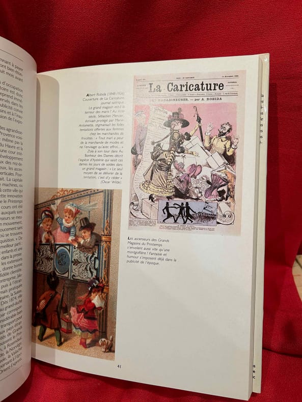 Après les merciers du XVIIe siècle, les marchandes de frivolités du XVIIIe siècle et les magasins de nouveautés du début du XIXe siècle, les Grands Magasins, nés avec l’ère industrielle et le développement du chemin de fer, imposent un changement radical des stratégies commerciales. Bon état d’occasion