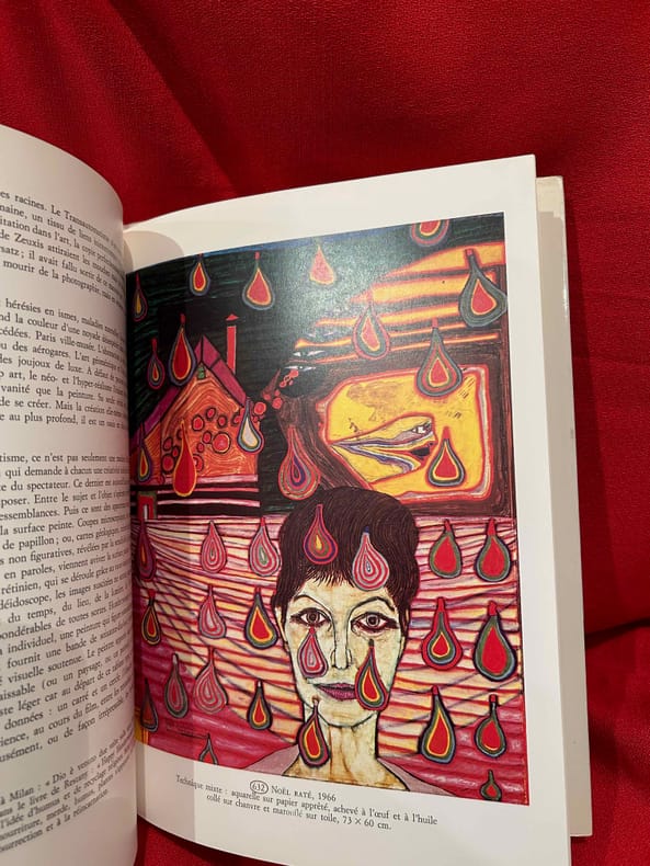 Originalausgabe. - Erschien zur Ausstellung in der gleichnamigen Galerie. Mit einem Text von Pierre Restany und Texten von Hundertwasser u.a. einem Auszug aus seiner "Grammatik des Sehens" in französischer Sprache. - Die Broschurheftklammern angerostet. Umschlag fleckig.
