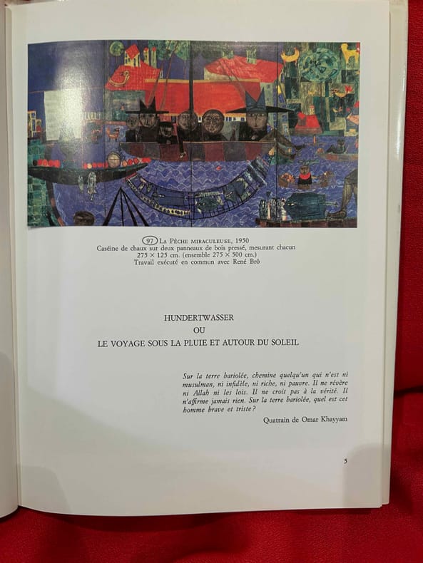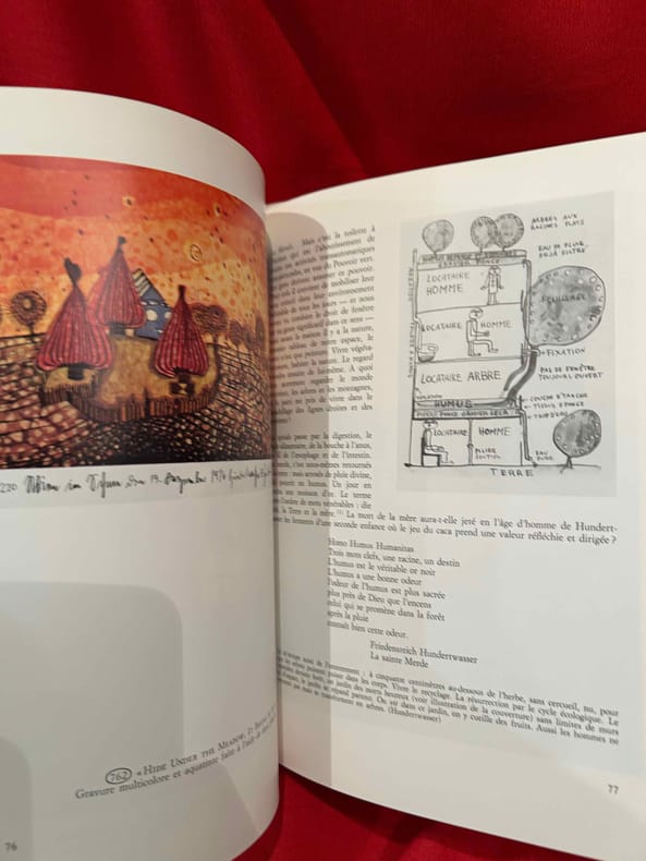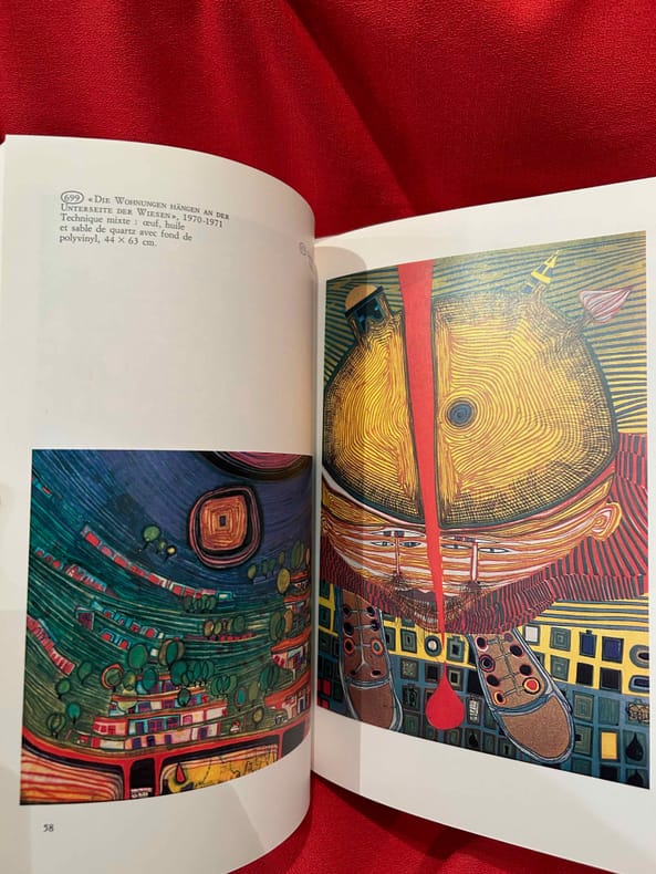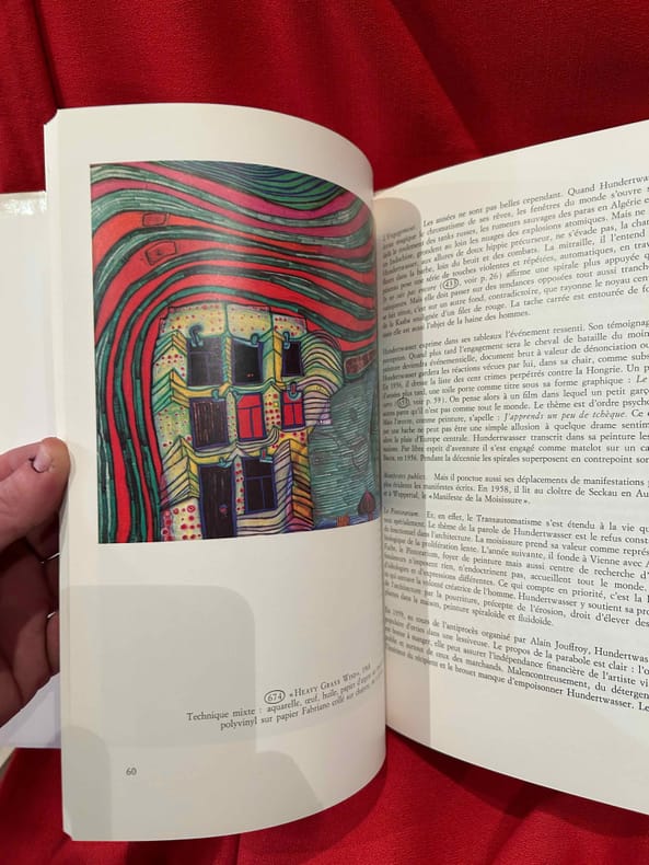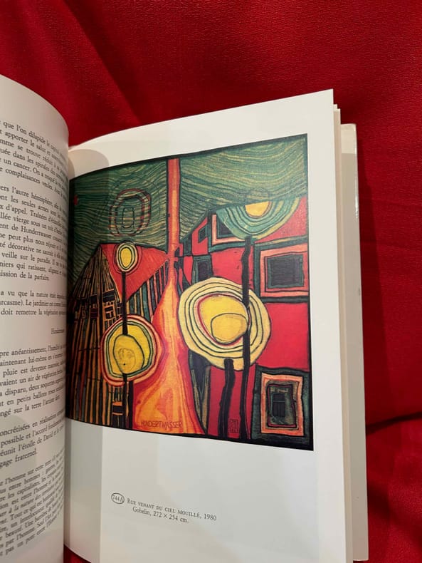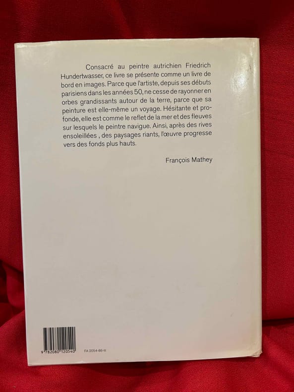 Frederic Stowasser, dit Hundertwasser (1928-2000) est le plus célèbre artiste autrichien de son temps. Son art prend source chez Schiele, Klimt et Klee et ouvre une nouvelle dimension à la recherche de l’organique, combattant l’équerre et le quadrillage et unissant la créativité de la nature à celle de l’homme. Très bon état d’occasion