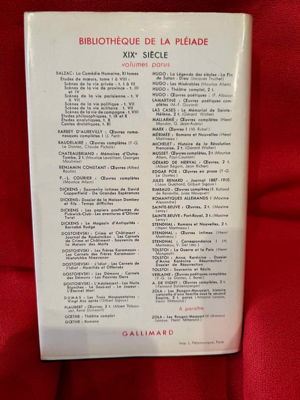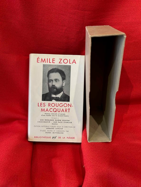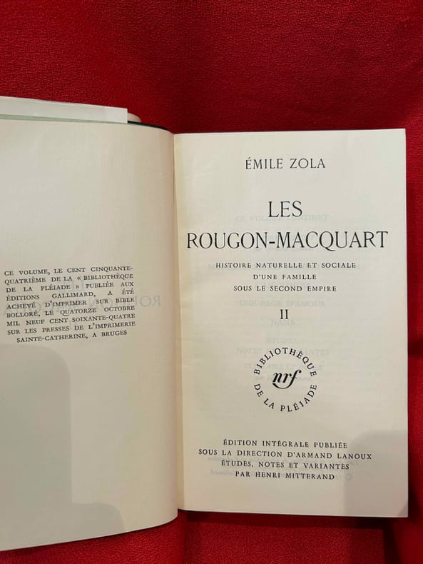 Coll. "Bibliothèque de la Pléiade" n° 197, Paris, éd. Gallimard, 24 août 1967, très fort in-12, basane vert foncé, dos décor doré éd., jaquette portrait de l'auteur éd., rhodoïd éd., tranche de tête bleue, emboîtage carton gris éd., 1806 pp., papier bible, édition intégrale publiée sous la direction de Armand Lanous, études, notes et variantes par Henri Mitterand, index des personnages, table des matières, Le quatrième tome de la "saga" des Rougon-Macquart, qui compte 5 tomes. Très bon état, jamais lu
