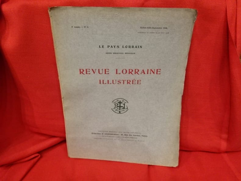 Nancy, Éditions Le Pays Lorrain, 1908 ; grand in-4° raisin, 40 pp. + 5 pl. hors-texte, couverture, cahiers et illustrations hors-texte libres. Sommaire: Texte: Gaston VARENNE: Les Artistes lorrains aux Salons de 1908, avec douze illustrations dans le texte et deux hors-texte, p. 113 à 126./ René PERROUT: Le Salon vosgien â Épinal, avec un en-tête de chapitre et un cul-de-lampe, p. 126 à 128./ Pierre BOYÉ: Les Châteaux du roi Stanislas. – IV. Commercy, avec vingt-sept illustrations dans le texte et un hors-texte, p. 129 à 152. – Planches hors-texte: XXII. – Haussonville. Héliogravure, d’après le cliché de P. Michels, p. 112./ XXIII. – Le Calvaire de Fresnes-en-Woëvre. Phototypie, d'après le tableau de H. Renaudin, p. 116./ XXIV. – La Rentrée des foins dans les Vosges. Camaïeu, d’après l’original, gravé sur bois, par P.-E. Colin, p. 120./ XXV. – En-tête de la parabole de l'avare. Gravure en couleurs, d’après la composition d'Eugéne Burnand, p. 124./ XXVI. – Le Pavillon royal ou château d'eau de Commercy. Simili-aquarelle, d’après une gouache de Nicolas Belphel, p. 128. - Imprimé par la Maison Berger-Levrault & Cie de Nancy (tirage 600 exemplaires).