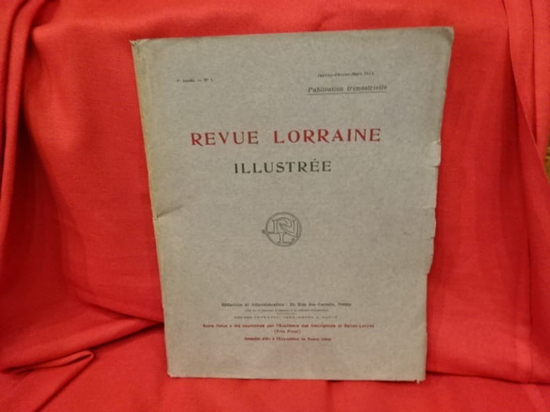 Nancy, Éditions Le Pays Lorrain, 1912 ; grand in-4° raisin, 40 pp. + 5 pl. hors-texte, couverture, cahiers et illustrations hors-texte libres. Sommaire: Texte: Henri BERNARD: Saint-Mihiel (fin). – V. La Halle, avec vingt-huit illustrations dans le texte et deux planches hors-texte, p. 1 à 30./ Edgard REYLE: Peintres de chez nous: Albert Marks, avec trois illustrations dans le texte, p. 31 à 34./ Alexandre MARTIN: Vieilles faïences, avec dix illustrations dans le texte, p. 35 à 40./ René d'AVRIL: Les vitraux de Jacques Gruber, avec huit illustrations le texte et trois planches en couleurs hors-texte, p. 41 à 48. – Planches hors-texte: II. – La Cour de la Halle de Saint-Mihiel avant 1902. Similigravure, d'après le dessin de J. Poitte, p. 8./ Ill. – Le Pont de Saint-Mihiel avant 1908. Similigravure, d'après le dessin de J. Poitte, p. 16./ IV. – Vitrail «Les Algues», de Jacques Gruber. Gravure en couleurs, p. 40./ V. – Vitrail «Paysage des Vosges», de Jacques Gruber. Gravure en couleurs, p. 42./ VI. – Vitrail pour chambre d'enfants, de Jacques Gruber. Gravure en couleurs, p. 46. Imprimé par la Maison Berger-Levrault & Cie de Nancy (tirage 790 exemplaires).