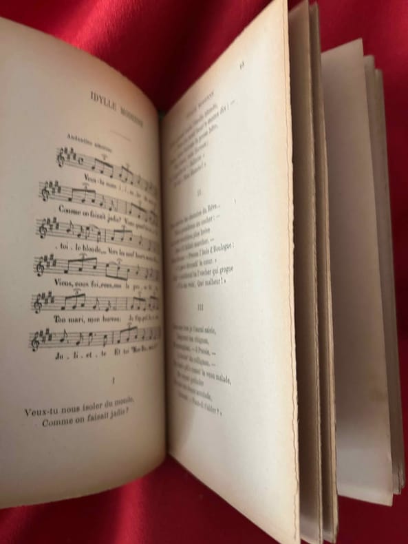 Ernest Flammarion, sd. (1900) 1900 In-12 demi-basane à coins, dos à nerfs, fer spéciale, couverture supérieure rempliée et illustrée en couleurs conservée, tête dorée, 234 pp. Dessins et partitions gravés dans le texte et à pleine page. Bon exemplaire.
