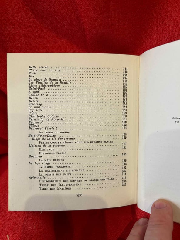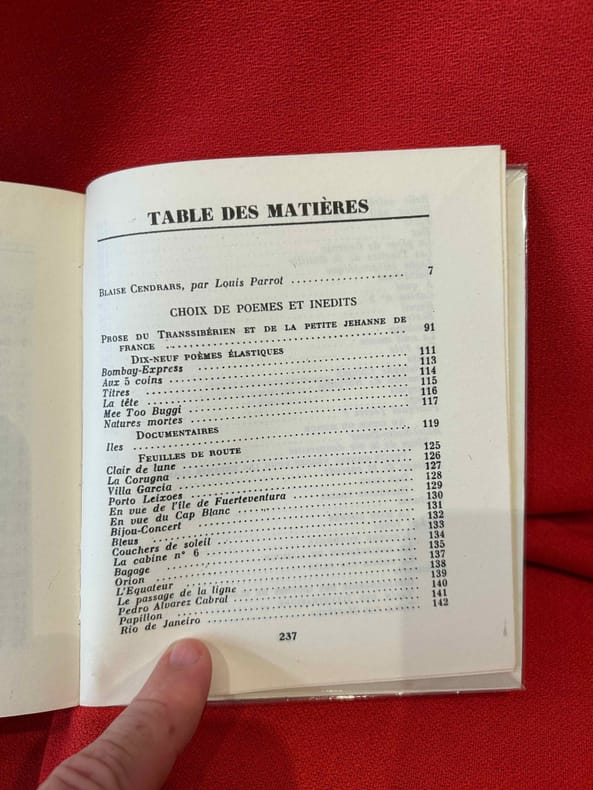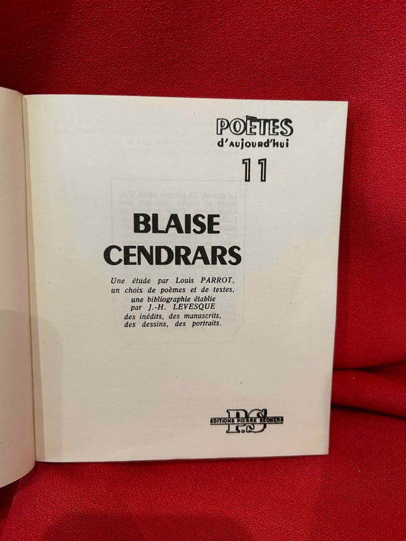 EDITION ORIGINALE de ce recueil des poèmes de Blaise Cendrars. Portrait de l'auteur en frontispice. Introduction de Jacques-Henry Lévesque "Blaise Cendrars ou Du monde entier au coeur du monde". Tirage à 2310 exemplaires numérotés. UN DES 30 PREMIERS sur PUR FIL LAFUMA, tirage de tête. Dos légèrement insolé, mais bon exemplaire broché, tel que paru, non coupé et non rogné. >>> Le recueil comprend: Les Pâques à New-York -- Prose du Transsibérien et de la Petite Jeanne de France -- Le Panama ou l'Aventure de mes sept oncles -- Dix-neuf poèmes élastiques -- La Guerre au Luxembourg -- Sonnets dénaturés -- Poèmes nègres -- Documentaires [Kodak] -- Feuilles de route -- Sud-Américaines -- Poèmes divers -- Au coeur du monde. & une bibliographie. Bon 0