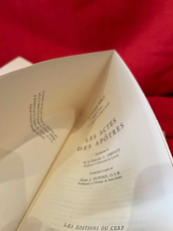 Paris, Les Éditions du Cerf, 1954 ; in-8 (143 x 193 mm), 224 pp., broché, couverture à rabats (non coupé). Introduction du chanoine L. Cerfaux. Traductions et notes de dom J. Dupont O. S. B.