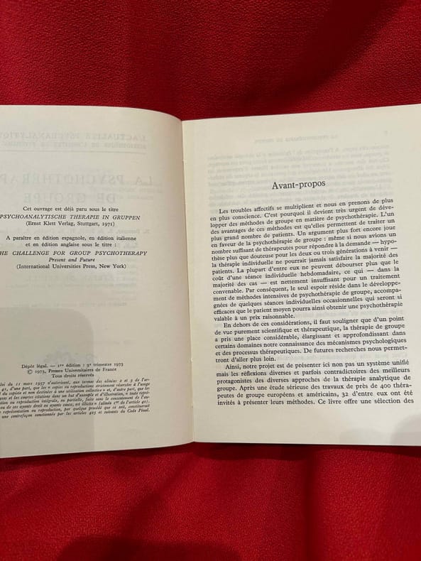 Paris, Presses Universitaires de France, 1965 ; in-8 (170 x 239 mm), 240 pp., broché. Compte rendu du Séminaire international de Psychothérapie de groupe (Lausanne, 1963).