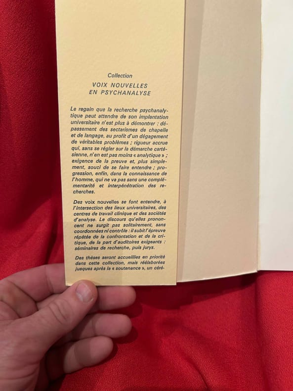 Paris, Presses universitaires de France / PUF, coll. "Voix nouvelles en psychanalyse", 1979. In-8 (225x155mm) broché, couv. à rabats, 149 p. Très bon état.