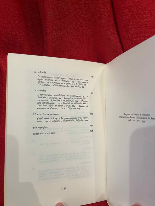 Paris, Presses Universitaires de France, 1981 ; in-8 (151 x 222 mm), 152 pp., broché, couverture à rabats. Collection «Voix nouvelles en Psychanalyse», dirigée par Jean Laplanche. Sous la direction de Pierre Fédida.
