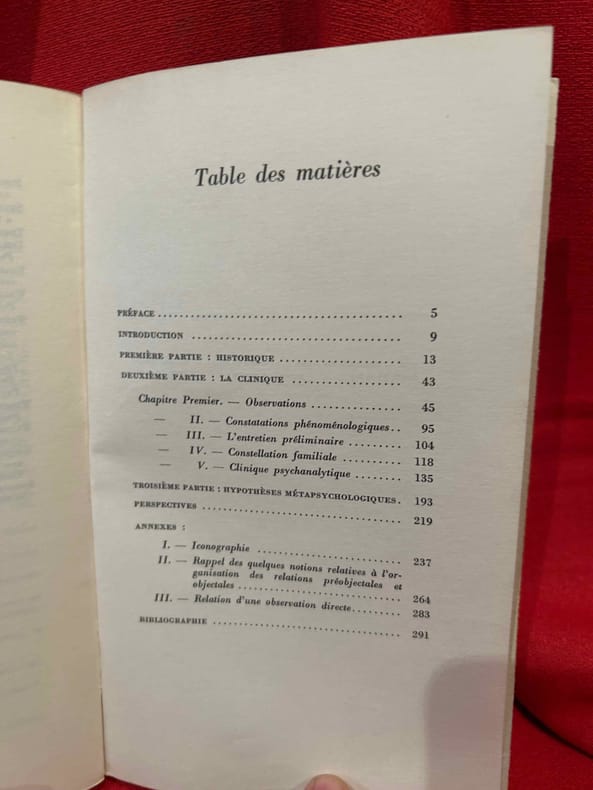 Paris, Presses Universitaires de France, 1972 ; in-8 (132 x 220 mm), 304 pp., broché, couverture à rabats. Collection «Le fil rouge». Section 2: Psychanalyse et psychiatrie de l’enfant, dirigée par J. de AJURIAGUERRA, René DIATKINE, Serge LEBOVICI. Préface de Serge LEBOVICI.
