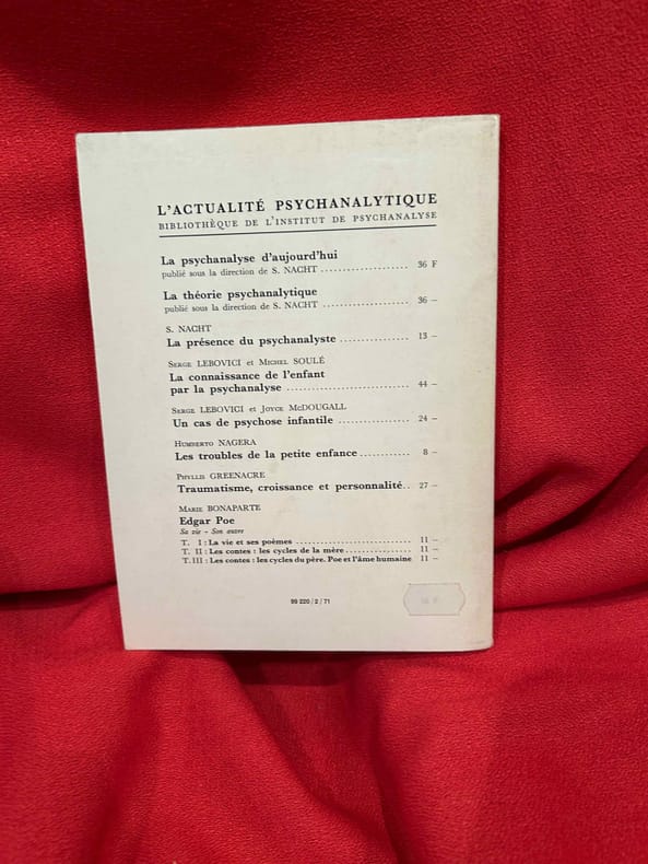 Paris, Presses Universitaires de France, 1971 ; in-8 (136 x 180 mm), 192 pp., broché, couverture illustrée. L’Actualité psychanalytique. Bibliothèque de l’Institut de Psychanalyse. Traduit par Théo Léger.