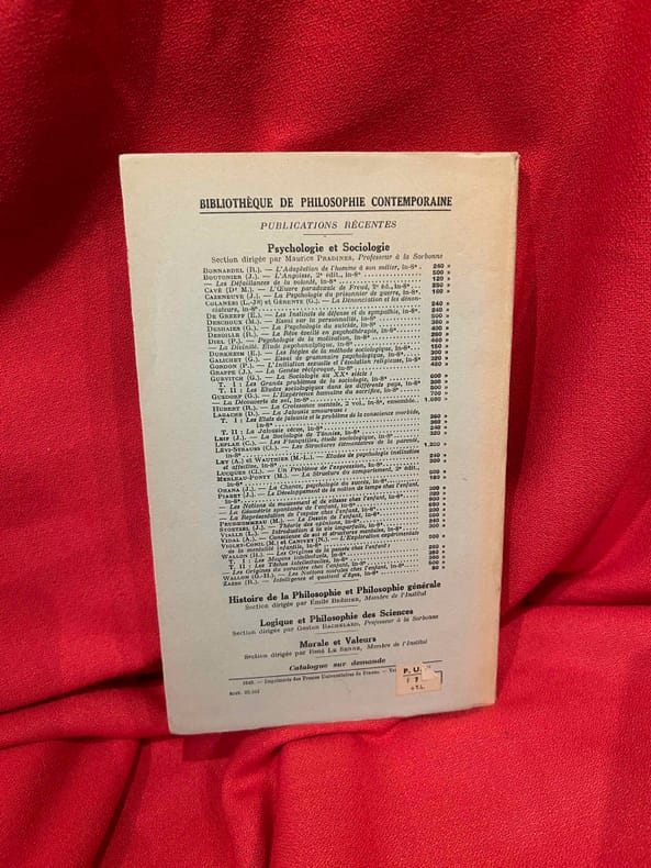 Paris, Presses Universitaires de France, 1950 ; grand in-8 (142 x 228 mm), [4]-220 pp., Broché. Bibliothèque de Philosophie contemporaine, psychologie et sociologie, section dirigée par Maurice PRADINES.