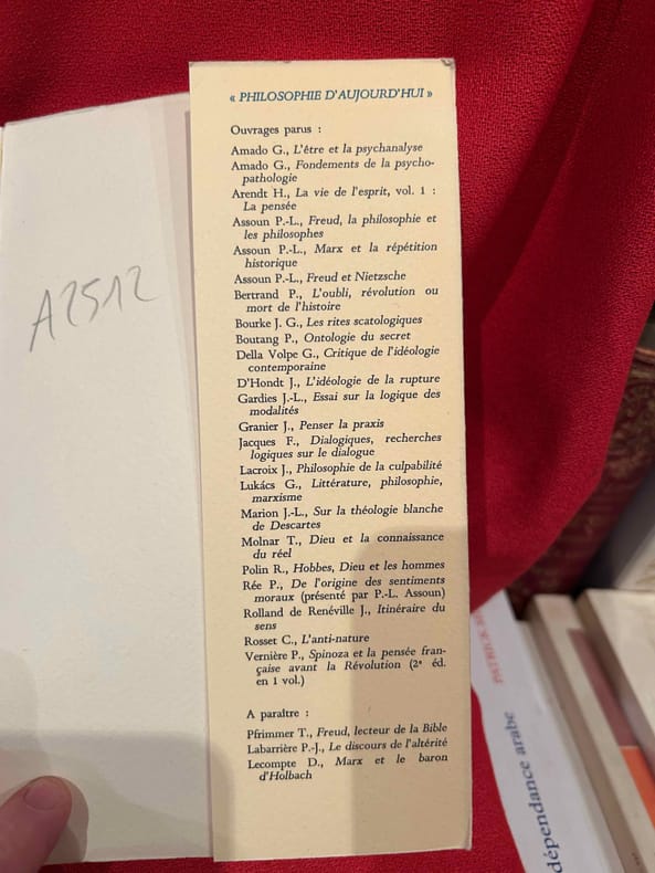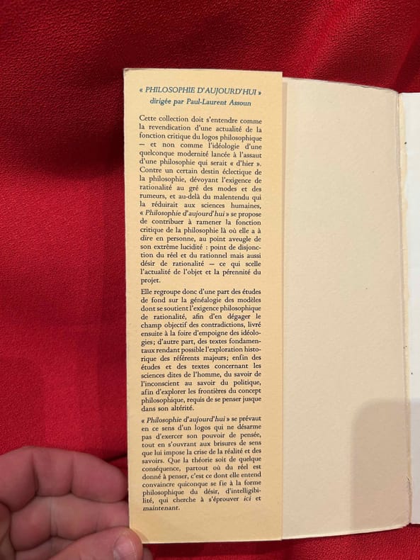 Paris, Presses Universitaires de France, 1982 ; in-8 (137 x 215 mm), [2]-320 pp., broché, couverture à rabats. Collection «Philosophie d’aujourd’hui», dirigée par Paul-Laurent Assoun.