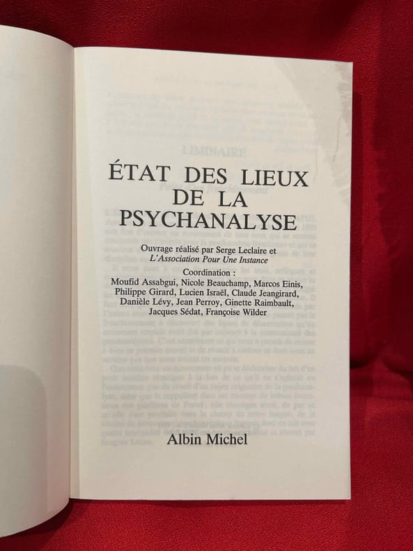 LECLAIRE Serge, l'Association Pour Une Instance (A.P.U.I.) - Moufid Assabgui, Nicole Beauchamp, Marcos Einis, Philippe Girard, Lucien Israël, Claude Jeangirard, Danièle Lévy, Jean Perroy, Ginette Raimbault, Jacques Sédat, Françoise Wilder (coordination)
