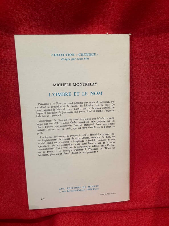 Paris, Les Editions de Minuit, "Critique", 1977, 13,5 x 21,5, 170 pages cousues sous couverture imprimée.
