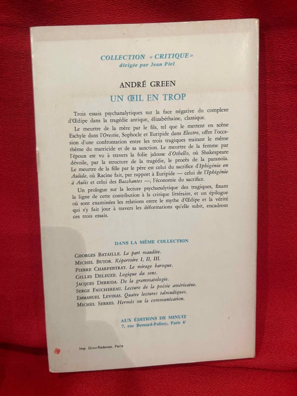 Paris, Les Éditions de Minuit, 1975 ; in-8 (136 x 218 mm), 292 pp., broché. Collection « Critique », dirigée par Jean PIEL.