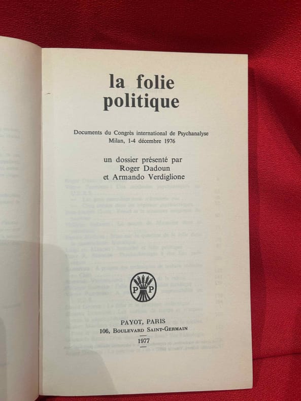 Paris, Éditions Payot & Rivages, 1977 ; in-8 (141 x 227 mm), 232 pp., broché. Collection «Traces», dirigée par Roger Dadoun. Documents du Congrès international de Psychanalyse, Milan, 1-4 décembre 1976.