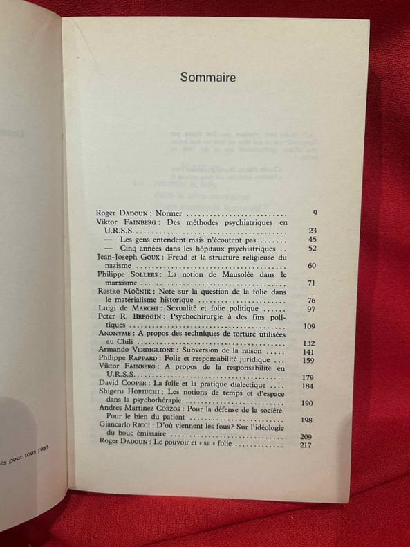 Payot, 1977, in-8°, 228 pp, contributions de Ph. Sollers, D. Cooper, etc. (Coll. Traces)