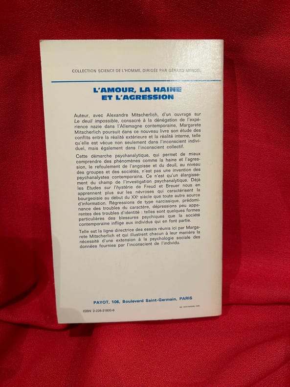 Paris Payot 1975 in 8 (23x14,5) 1 volume broché, 283 pages [2]. Collection ''Bibliothèque Scientifique''. Misterlich Margarete, Membre de l'Institut Sigmund Freud de Francfort. Bon exemplaire