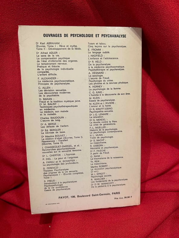 Paris, Payot, 1963 ; grand in-8 (142 x 228 mm), 362 pp., broché. Bibliothèque Scientifique. Collection Sciences de l'Homme dirigée par le Dr G. Mendel. Traduit de l’américain par le Dr Alexandre Cornier. Préface du Dr Pierre Kuquet.