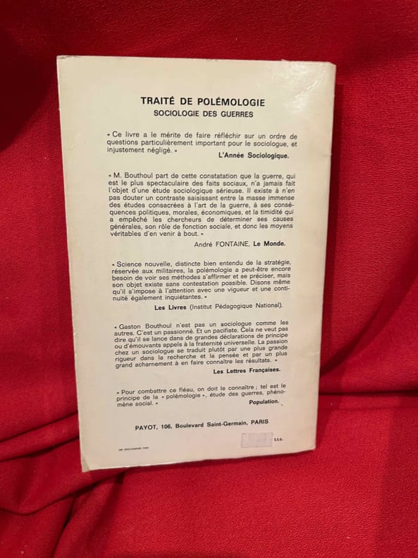 Collection bibliothèque scientifique - Méthodes - doctrines et opinions sur la guerre - morphologie - éléments techniques, démographiques, économiques, psychologiques - périodicité - problématique, développements et recherches. Classification Dewey : 301-Sociologie
