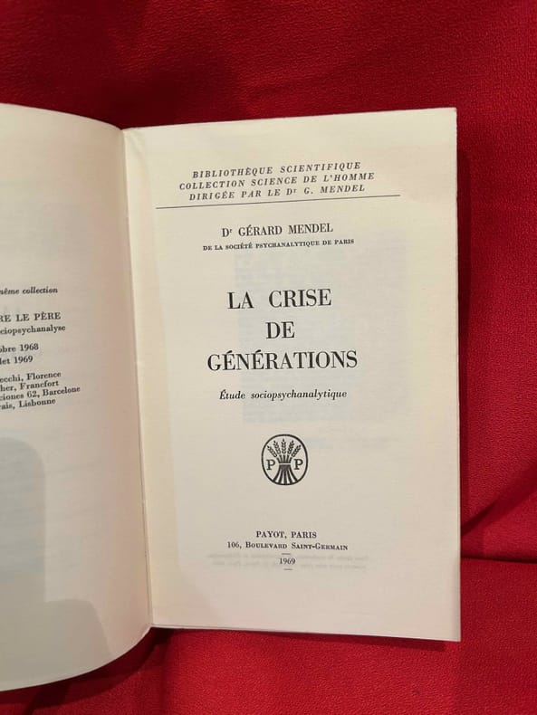 Paris, Payot, 1969 ; in-8 (142 x 226 mm), 256 pp., broché (non coupé). Bibliothèque Scientifique. Collection Sciences de l'Homme dirigée par le Dr G. Mendel.