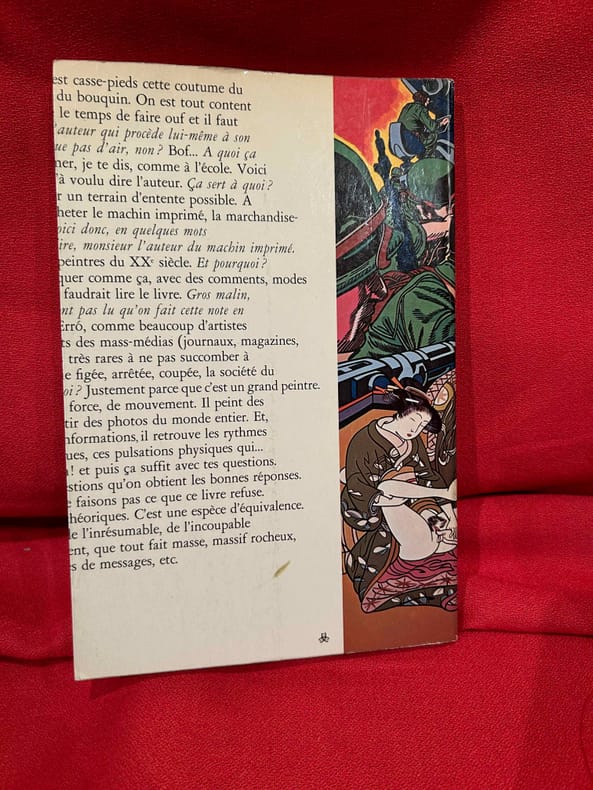 Galerie nationale du Jeu de Paume / Rmn, Paris, 1999. In-4, broché sous couverture rempliée et illustrée en couleur, 263 pp. Créer c'est coller, par Paul Fournel - Phénoménologie picturale et allégorie politique dans l'art d'Erró, par Arthur C. Danto - Erró politique, par Laurence Bertrand Dorléac - Erró : l'extase matérielle, par Sarah Wilson - Erró, la tentation de l'héroïsme, ...