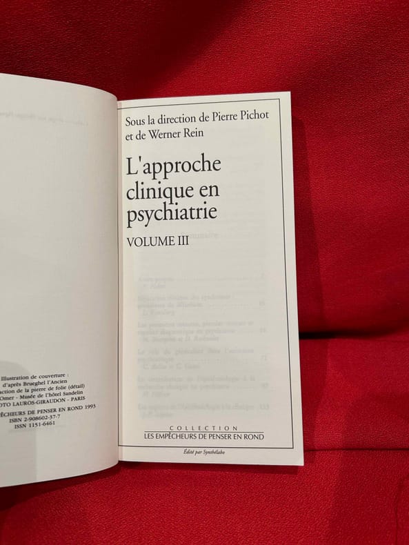 Le Plessis-Robinson, Synthélabo, 1993 ; in-12 (105 x 201 mm), 344 pp., broché, couverture illustrée. Collection «les Empêcheurs de penser en rond», dirigée par Philippe Pignarre.