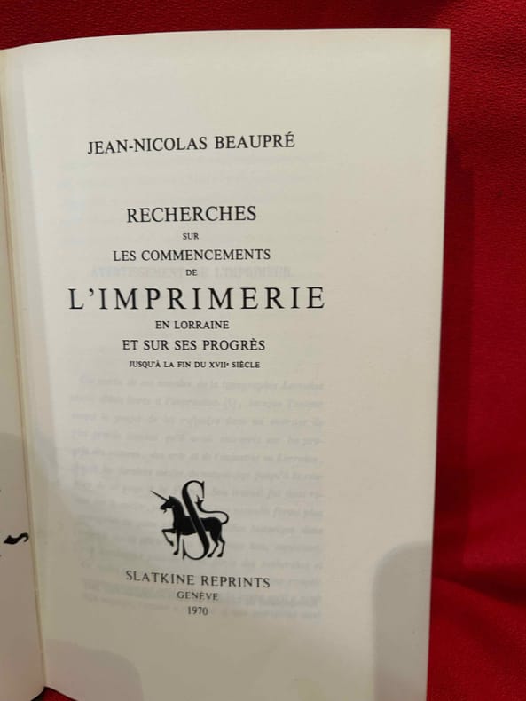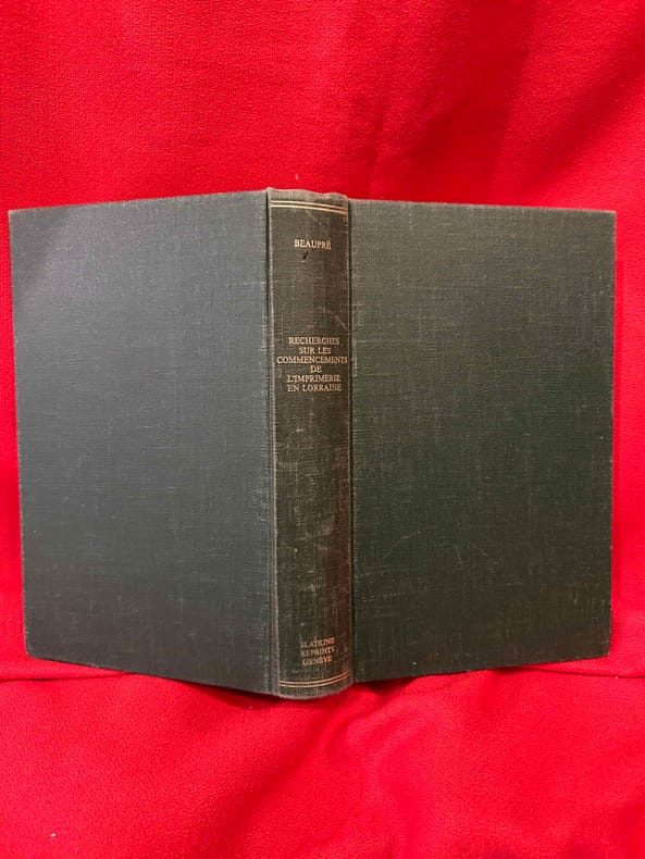 Genève, Slatkine Reprints, 1970 ; in-8 (139 x 218 mm), VIII-548 pp., reliure d'éditeur pleine toile, coloris vert foncé, dos lisse. Réimpression de l’édition de Saint-Nicolas-de-Port, 1845.