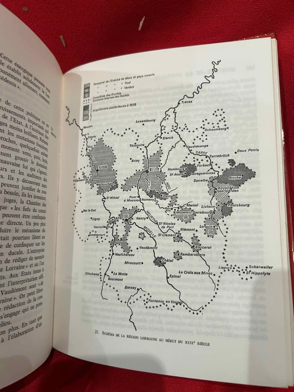 Toulouse, Édouard Privat, Éditeur, 1978 ; in-8 carré, 500 pp., reliure d'éditeur pleine toile, coloris beige, dos lisse, sous jaquette illustrée. Collection «Univers de la France et des pays francophones», N° 38. Ont collaboré à cet ouvrage: Christine Guillaume, assistante de la Circonscription des Antiquités préhistoriques de Lorraine, Yves Burnand, chargé d'enseignement d'Antiquités Nationales à l'Université de Nancy-II; directeur du Centre d'Études gauloises et romaines, Michel Parisse, professeur d'Histoire médiévale à l'Université de Nancy-II, Alain Girardot, maître-assistant à l'Université de Dijon, Jean Coudert, professeur d'Histoire du Droit à l'Université de Nancy-II; directeur du Centre lorrain d'Histoire du Droit, Yves Le Moigne, maître-assistant à l'Université de Metz, François Roth, professeur d'Histoire contemporaine à l'Université de Nancy-II. Quelques illustrations en noir et blanc in et hors-texte. Bon état.