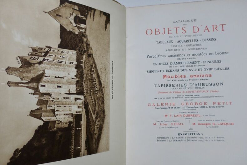 Odon De Montesquiou-fezensac Meubles et sièges / tableaux-objets d'art provenant du chateau de courtanvaux 1929. non paginé, in 4°, broché, (couverture abimée, 231 lots, intérieur frais, première vente.