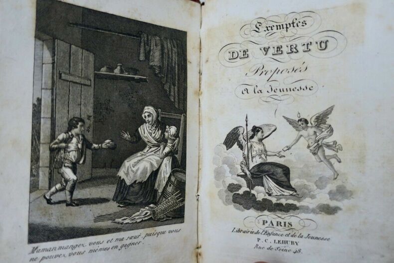 Exemples de Vertu proposes a la jeunesse 25,00 ? Exemples de Vertu proposes a la jeunesse. (Bibliothèque spéciale de la jeunesse) Paris : Librairie de l'Enfance et de la Jeunesse, P.-C. Lehuby, 90 x 137 mm., reliure cartonnée, angles bien frottés, VII & 207 pp.