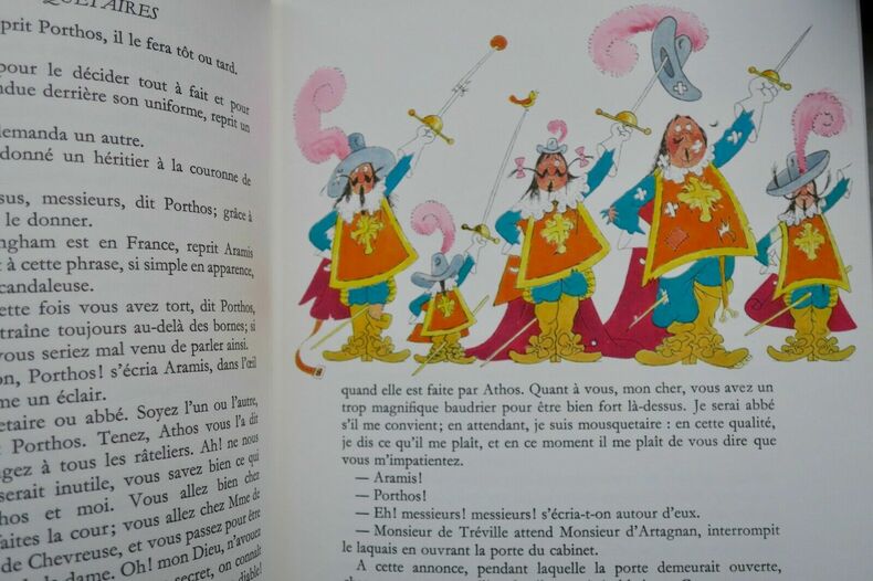 DUMAS Alexandre Les trois Mousquetaires (3 volumes sous emboîtage). illustrations en couleurs de Dubout Monte-Carlo, André Sauret, 1968. 19 x 24, 3 volumes, 305 317 317 pages, reliure d'édition cartonnée bordeaux, plats et dos : riche décor doré, tête dorée, sous étui tissu bordeaux(petites usures aux lèvres) bordé de cuir. Exemplaires numérotés sur papier vélin Arjomari Les envois hors de l'union européenne sont payant