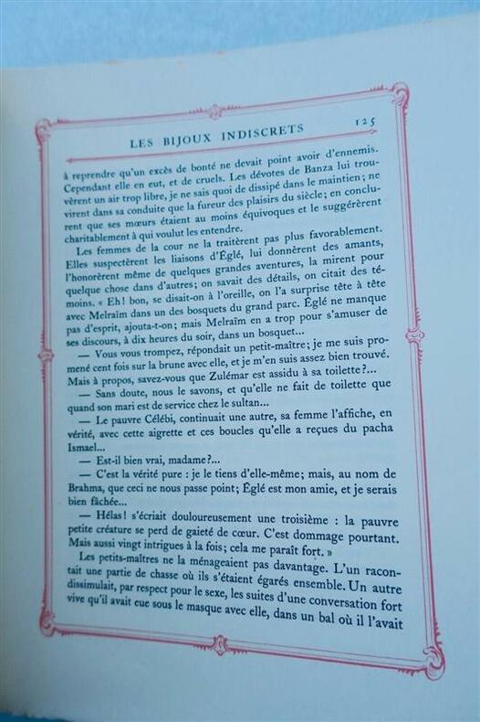 Denis DiderotDIDEROT, LES BIJOUX INDISCRETSParis, Le Vasseur et Cie, 1938, in-4°, broché, sous couverture rempliée, non rogné, quelques rares & pâles rousseurs, sous étui (frotté), cartonnéL'un des exemplaires sur vélin de Rives, numéroté, ici le n°252