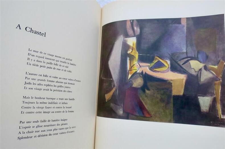 Paul ELUARDVoirEditions des trois collines Genève - Paris, 1948. 24 x 34,5 cm. 147 pp. Broché, couverture (gravure sur cuivre) rempliée illustrée par Raoul Ubac, petites usures en coins et en coiffes, intérieur frais.Ouvrage consacré par Eluard à ses amis peintres : 64 reproductions dont 32 en couleurs contrecollées d'œuvres de Picasso, Chagall, Juan Gris, J.Villon, F. Léger, G. Braque, G. de Chirico, P. Klee, Max Ernst, Joan Miro, Y. Tanguy, André Masson, A. Beaudin, Man Ray, R. Magritte, S. Dali, Balthus, Léonor Fini, O. Dominguez, F. Labisse, Fautrier, Dubuffet, Chastel.Bel exemplaire tiré à 3000 exemplaires sur grand vélin blanc, ici le n°408