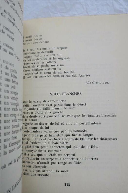 Paris Jeanne Bucher 1934, in-8 (15x19cm), broché, Edition originale. un des 2000 ex. sur alfa bouffant. Illustrations en hors-texte de Arp, Brauner, Chirico, Dali, Ernst, Giacometti, Hugo, Magritte, Man Ray, Mirò, Tanguy, Duchamp. Couverture légèrement défraîchie.
