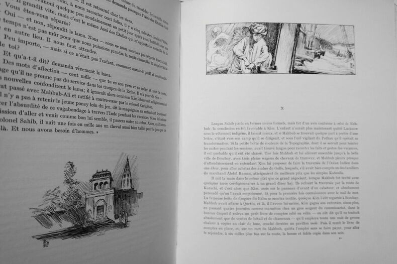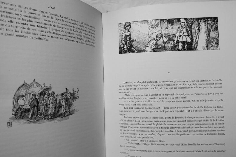 KIPLING (Rudyard). [FOUQUERAY] Kim. Paris, Delagrave, sans date (1937). Fort in 4°, belle reliure demi-basane havane, tête dorée. Traduction de louis Fabulet & Ch. Fountaine-Walker. 279 pp. illustrations pleine page & nombreux dessins in texte de Charles Fouqueray. Bien bel exemplaire Les envois hors de la France métropolitaine sont payants
