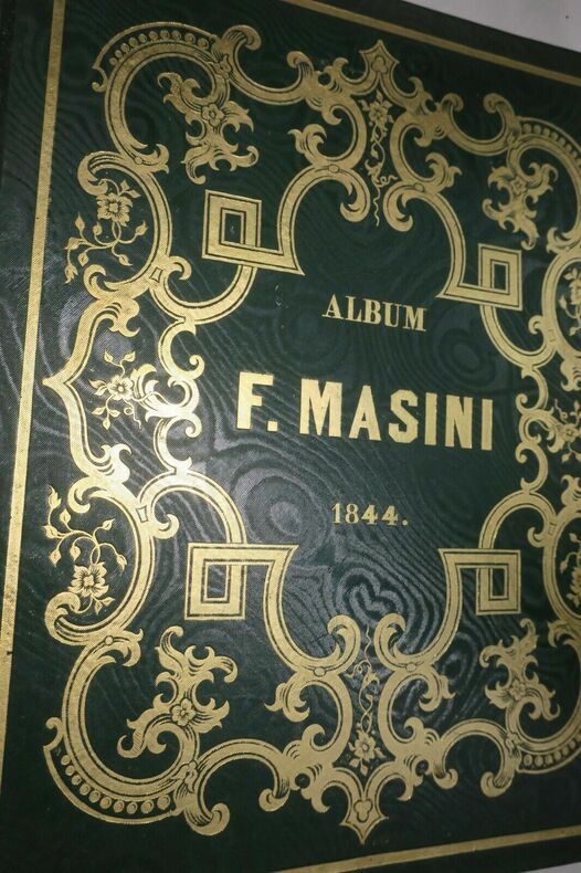 ALBUM DE F. MASINI Paris, Colombier éditeur, 1844, in-4°, belle reliure cartonnée romantique, tranches dorées, manques en coiffes, coins émoussés, quelques feuillets décalés, quelques rares et pâles auréoles, 32ff. dont 10 lithographies. Bien bel ouvrage