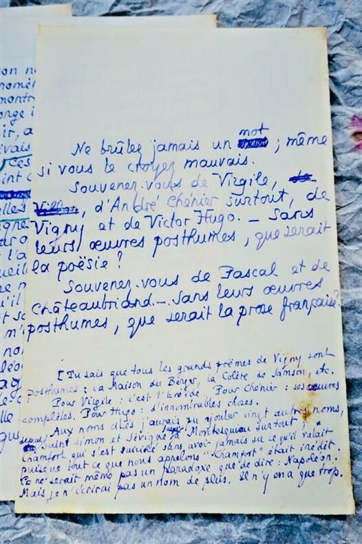 Neuf feuillets autographes manuscrits de Pierre Lou s