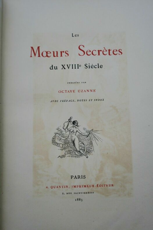 UZANNE Les Moeurs Secrètes du XVIIIè Siècle 1883