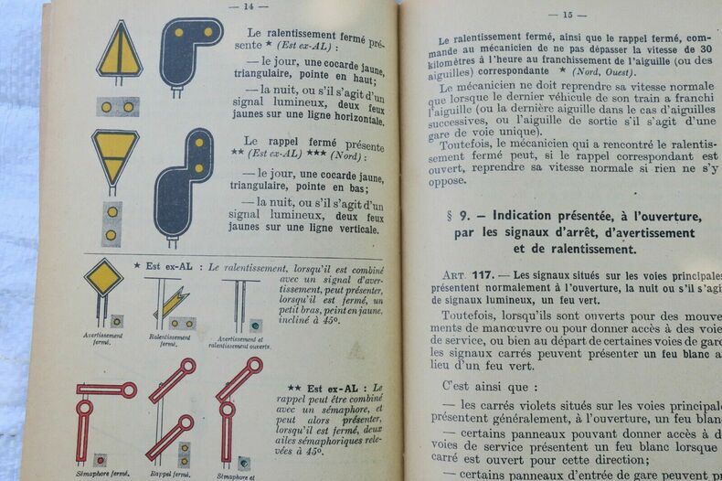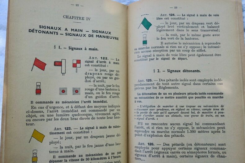Règlement Général de sécurité - SNCF - SIGNAUX Règlement Général de SÉCURITÉ SIGNAUX, broché, (13.5 cm x 21 cm) couverture cartonnée, 40 pages, illustrées de figures couleurs et noir et blanc, dans le texte, Paris, 1951 signaux d'arrêt, d'avertissement et de ralentissement - tableaux indicateurs de vitesse limite, ou T. I. V. - signaux à main - signaux détonants - signaux de manoeuvre - signaux des trains - signaux divers