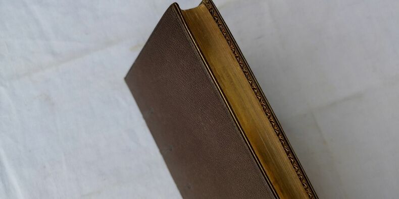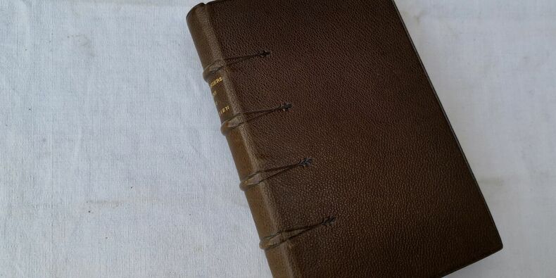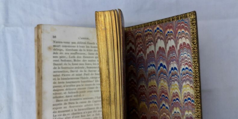 M. l'abbe Bayle Les derniers jours du chrétien explication des prières et des cérémonies de l'extreme-onction, du Saint viatique, de l'agonie, des funérailles, etc..suivi de l'office et de la messe des morts. Paris, Ambroise Bray, 1861, 90 x 130 mm., belle reliure plein chagrin, tranches dorées, 334 pp., quelques rares rousseurs. Bien rare