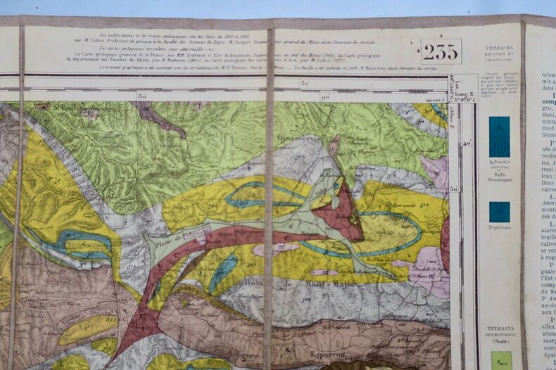 Thonon 61 x 91 cm 1/80000 1871 carte géologique, topographique état-major