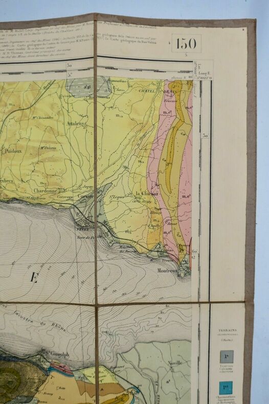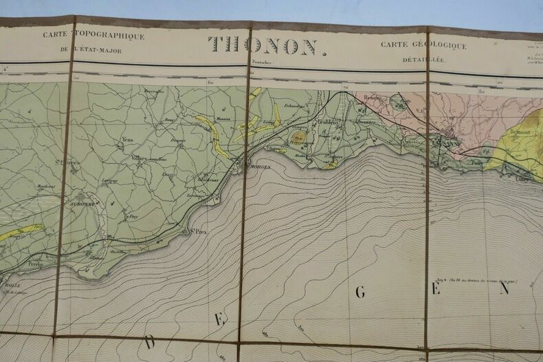 Aix environs 61 x 115 cm 1/80000 1870 carte géologique, topographique état-major