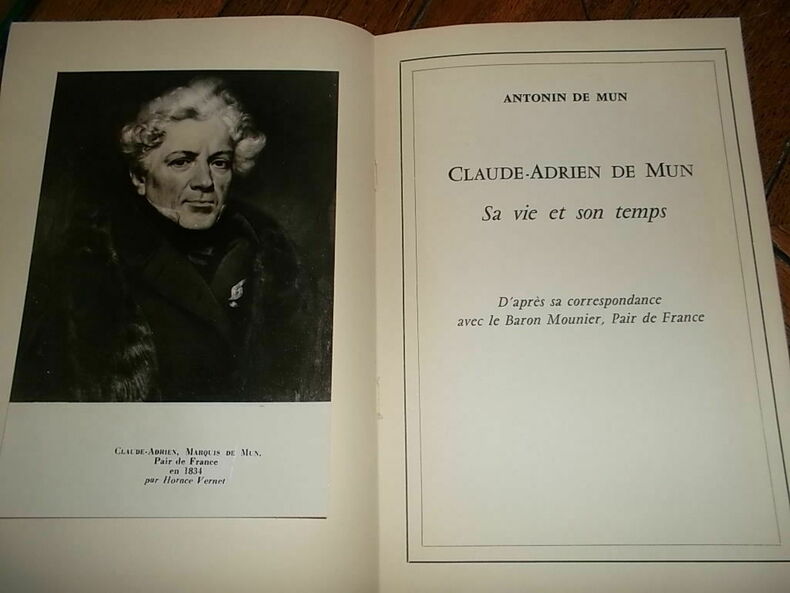 MUN, Antonin de. Claude Adrien de Mun. Sa vie et son temps D' après sa correspondance avec le Baron Mounier , Pair de France Spes, Paris 1962 - 104 pages intérieur frais bel exemplaire, avec envoi de l'auteur