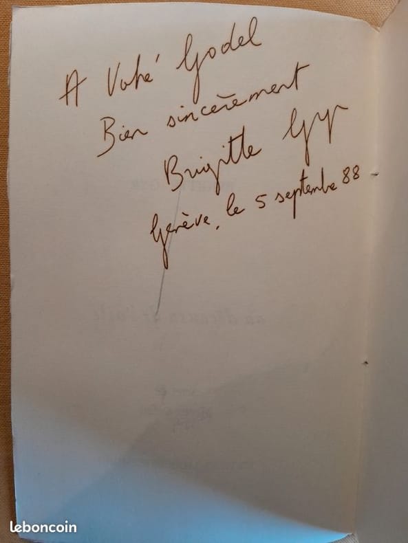 Remoulins-sur-Gardon, Jacques Brémond, 1988, in-8, br., 97 p., encres de Meyer Sarfati, envoi de l'auteur à Vahé Godel, poète et écrivain suisse de langue française. Plats légèrement salis et émoussés en bordure, intérieur propre.