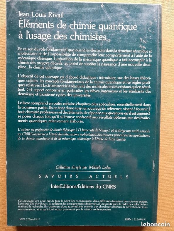INTER EDITIONS / EDITIONS DU CNRS. 1989. In-8. Broché. Bon état, Couv. convenable, Dos satisfaisant, Intérieur frais. 426 pages - 4 photos disponibles, dont une partie du sommaire. . . . Classification Dewey : 540-Chimie et sciences connexes