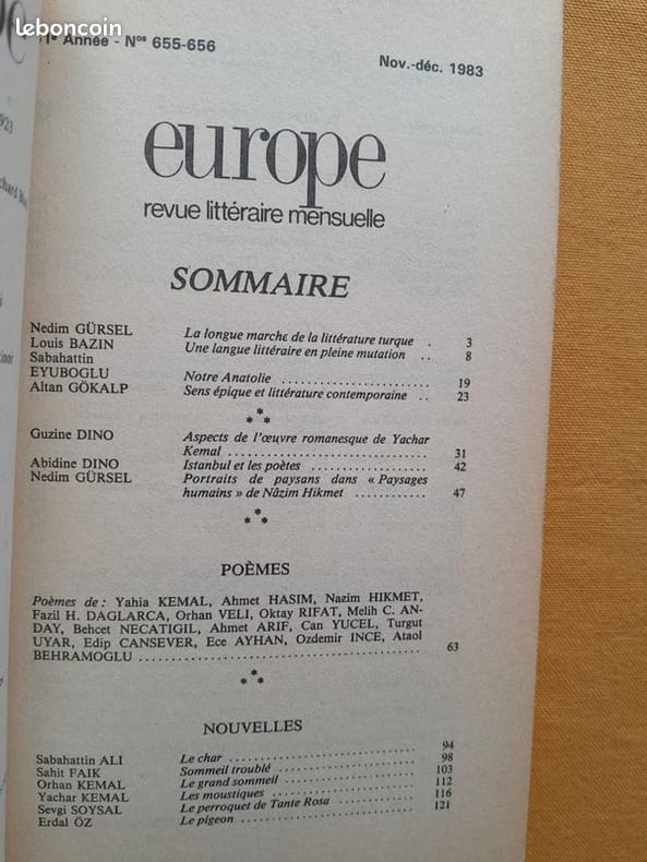 1983 Paris, revue Europe,1983, in huit, 236 pp, broché,
