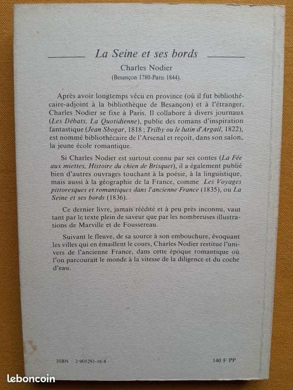 P., Editions de Paris, 1992, in-8°, 192 pp, 46 gravures et 4 cartes hors texte, lettrines et culs de lampe, table des communes situées sur les bords de la Seine, broché, couv. illustrée, bon état. Réimpression de l'édition de Paris, 1836.