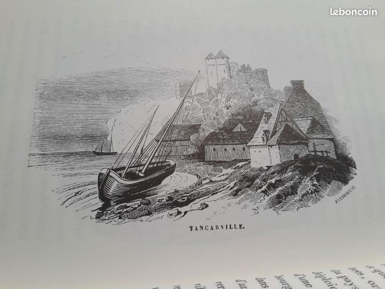 Edition Originale. Illustré de 54 gravures sur bois et 4 cartes de la Seine. Au bureau de la Publication, Paris, 1836, 192 pages + gravures hors texte et cartes. Reliure demi-cuir maroquin brun. Tête dorée. Couvertures d'origine et dos conservés. Vignettes par Marville et Foussereau, table des villes, bourgs et villages situés sur les bords de la Seine. A toutes marges. Le petit prix est justifié du fait qu'il manque une gravure (Caudebec).